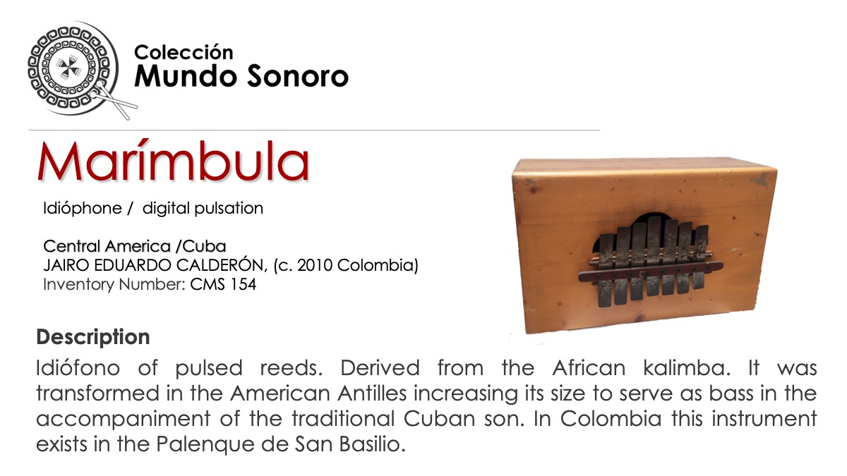 Acheré (Atchere) / Shekeré / Clave cubana / Claves cubanas / Güira / Güiro / Marímbula / Cuica  / Reco Reco / Marimba