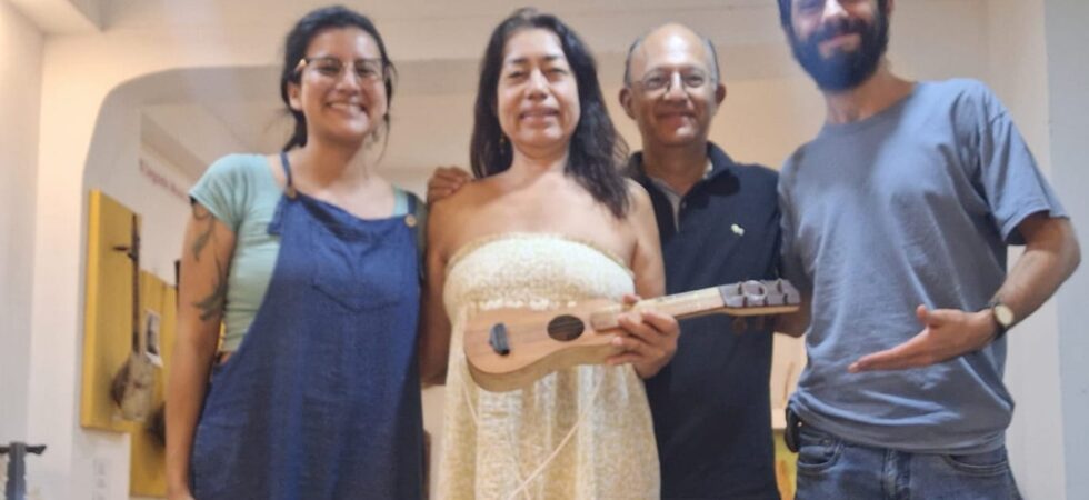 Casa Museo Mundo Sonoro se complace en celebrar la llegada de un nuevo instrumento a su colección. Se trata de la Jarana mosquito, cordófono tradicional del estado de Veracruz, México , que recibe su nombre por ser la más pequeña de la familia. Esta adquisición se da gracias a la amable visita de la joven pareja de artistas mexicanos: Rubén Montiel Ral, quien es antropólogo y laudero (constructor de jaranas); e Itzel Martínez, psicóloga y artista plástica,  y  podrá ser apreciado por nuestros visitantes en la Sala Mestizaje Musical en América, junto a otros instrumentos de la región.